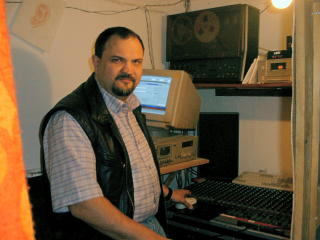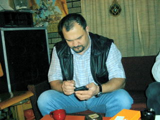 Da isser - der Detlef! Weil Dedi der Techniker ist, spielt er auch gern mit der Technik rum. Hier mit seinem kostbaren PALM-Computer...